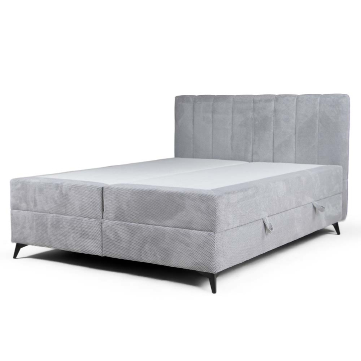 - Леглото е тапицирано приятна на допир и устойчива на износване дамаска в нежен сив нюанс, който лесно се интегрира в различни интериорни концепции.