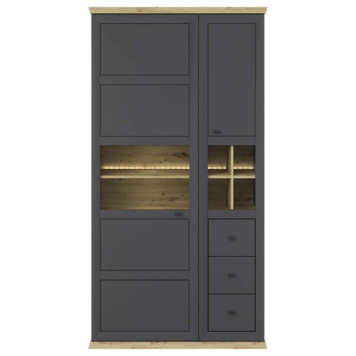 Висока витрина в декор дъб артисан и антрацит, част от модулан система Лаури.
