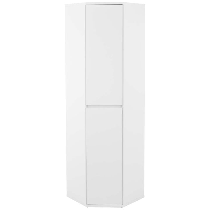 Шкаф за обувки в бял цвят с размери Ш:60/Д:60/В:210 см. Функционално предложение за пространството в ъгъла на входното помещение. Моделът разполага с две врати на панти, които осигуряват достъп до шестте отделения, в които може да съхранявате мин. 30 чифта обувки. Корпусът на шкафа е от ПДЧ.