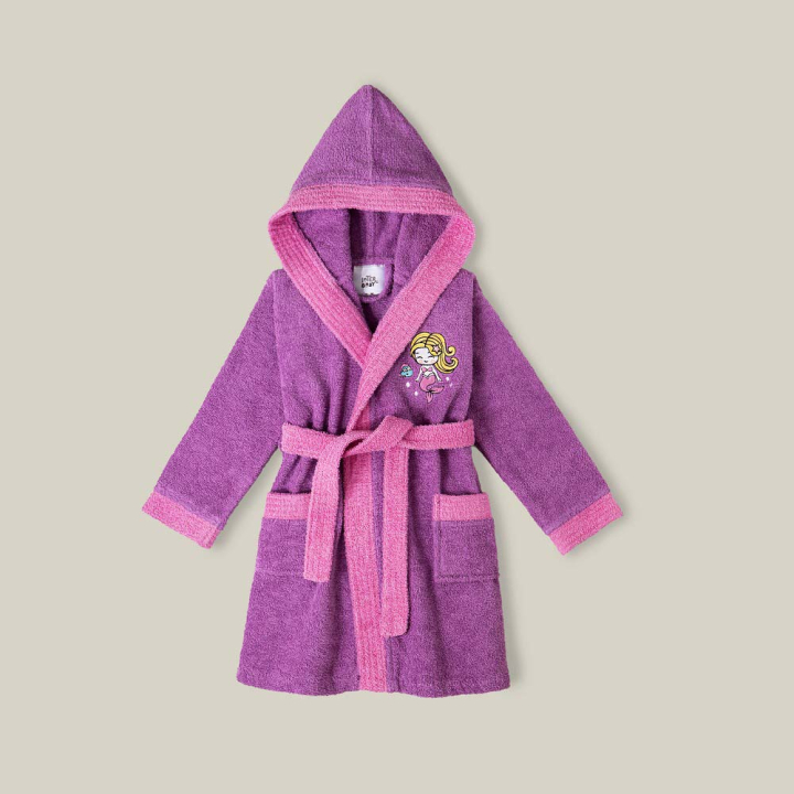 Памучен детски халат за баня с качулка 6-8 г., лилав цвят.