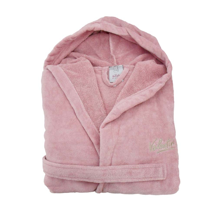 Памучен халат за баня в розов цвят с качулка, размер М-L
