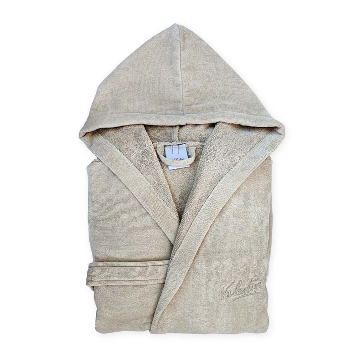 Памучен халат за баня в бежов цвят (пясъчен) с качулка, размер L-XL, унисекс