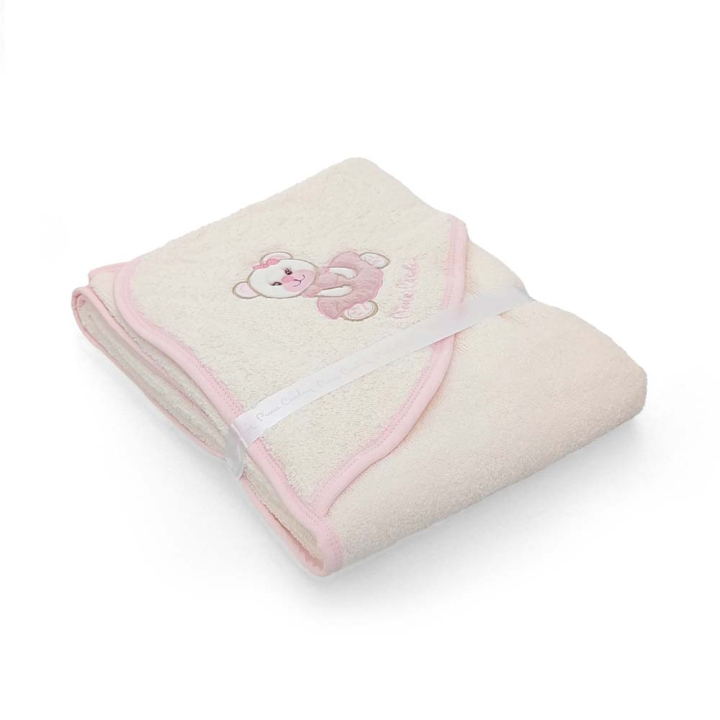 Бебешка хавлия в бежово и розово с качулка, 100% памук, 100/100 см