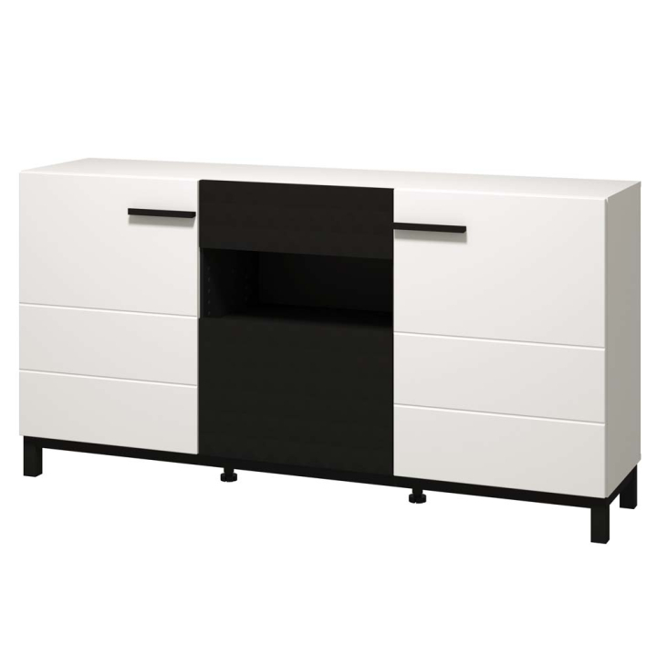 Комод от черна и бяла текстура с размери: 173/42/89 см