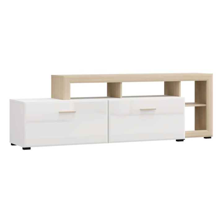 ТВ шкаф Карло с 2 врати в декор бял гланц и светъл дъб, размери: 189/41,5/61 см