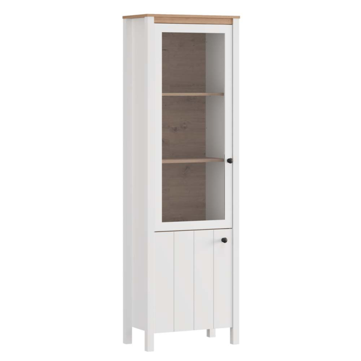 Витрина Бедфорд с 2 врати в декор бял мат и дъб артисан, размери: 60/33,5/191 см