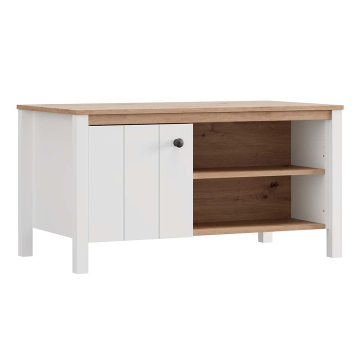 Холна маса Бедфорд с 1 врата и 1 рафт в декор бял мат и дъб артисан, размери: 101/54,5/53 см