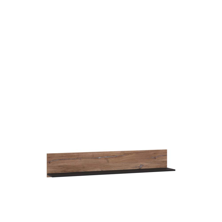 Класическа стенна полица с размери Ш:137.5/Д:19.5/В:24 см. Състои се от стенене панел с красива светла дървесна декорация, с ясно откроени чворове и дървесни пукнатини, както и рафт в черен цвят за съхранението или представянето на любими предмети, книги или артефакти в дневната. Полицата е стилно и практично обзавеждане за всеки дом, като ви препоръчваме да я комбинирате с останалите мебели от серията, за да създадете практично и стилно обзавеждане за дневната.
