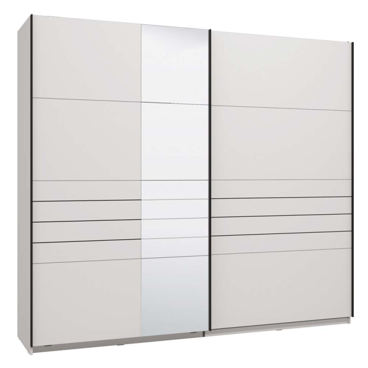 Бял двукрилен гардероб Веймонт с плъзгащи врати и огледало, размери: 245/61/217,5 см