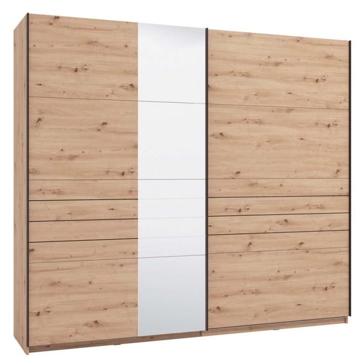 Двукрилен гардероб Веймонт с плъзгащи врати и огледало в декор дъб артисан, размери: 245/61/217,5 см