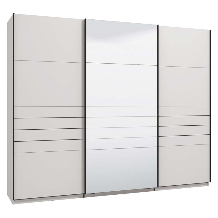 Бял трикрилен гардероб Веймонт с плъзгащи врати и огледало, размери: 267/61/217,5 см