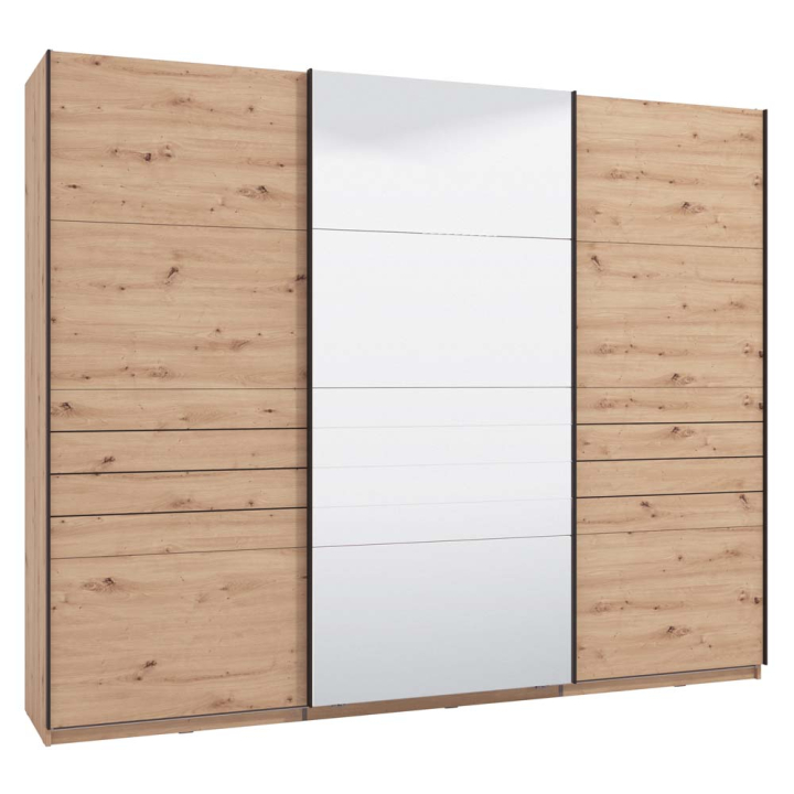 Трикрилен гардероб Веймонт с плъзгащи врати и огледало в декор дъб артисан, размери: 267/61/217,5 см
