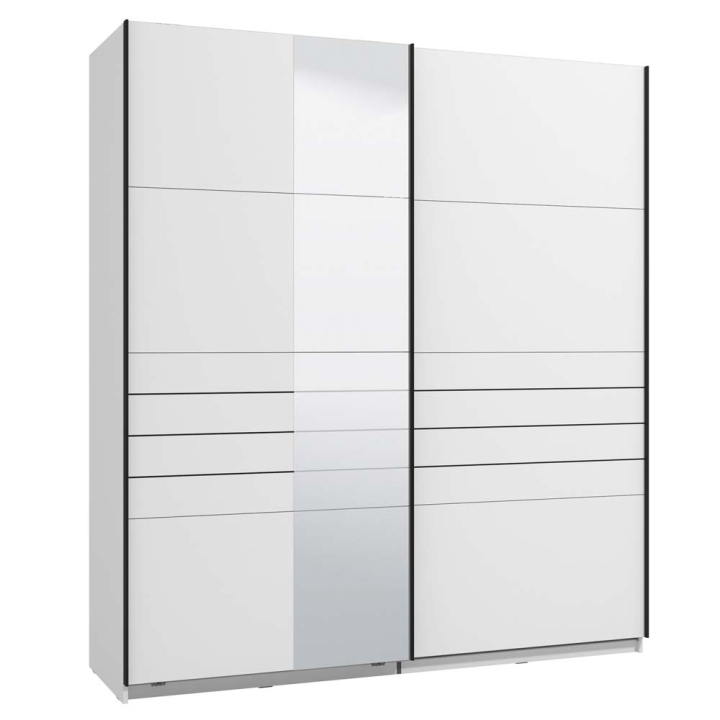 Бял двукрилен гардероб Веймонт с плъзгащи врати и огледало, размери: 195/61/217,5 см