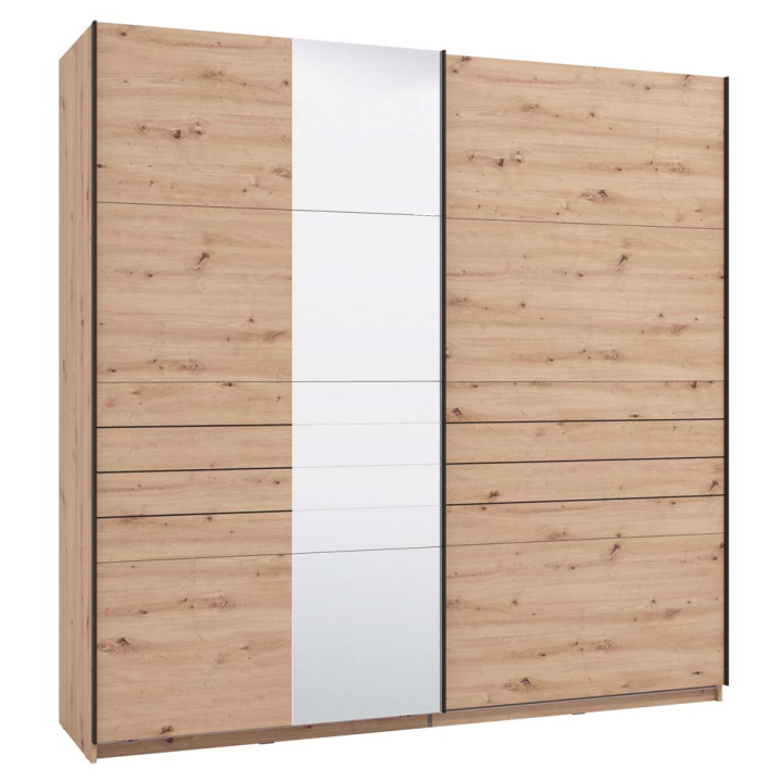 Двукрилен гардероб Веймонт с плъзгащи врати и огледало в декор дъб артисан, размери: 220/61/217,5 см