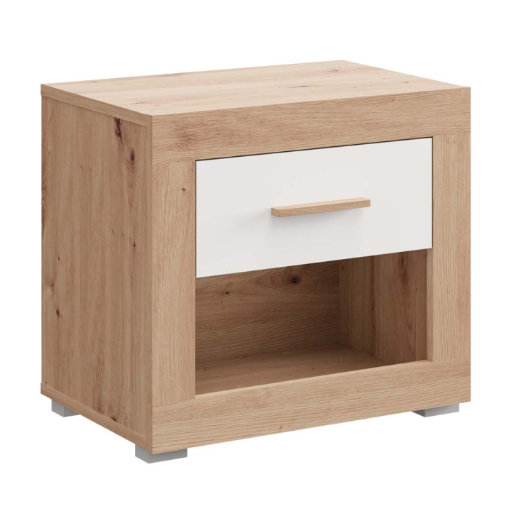НОЩНО ШКАФЧЕ КАРТЕНА С 1 ЧЕКМЕДЖЕ 51,5/35/47 СМ ДЪБ АРТИСАН И БЯЛО
