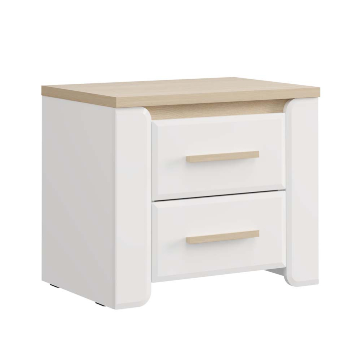 Нощно шкафче Абърдийн с 2 чекмеджета в декор бял гланц, размери: 58/40/49,5 см