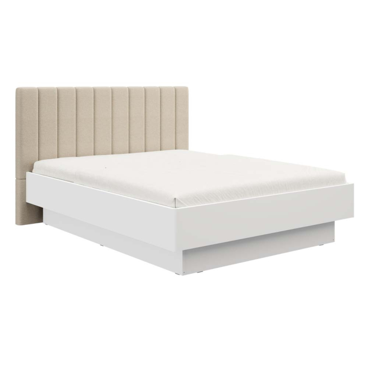 Леглото Абърдийн съчетава модерна естетика и уютна мекота. Контрастът между изчистената бяла конструкция и високата тапицирана табла в бежов текстил създава елегантен фокус в спалнята. Геометричните линии подчертават минималистичния характер на модела, а неутралните цветове позволяват лесно съчетаване с различни интериорни решения.