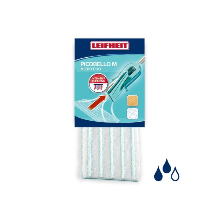Резервната кърпа за моп Picobello 33см на LEIFHEIT произведена с два вида специални влакна, които имат двойна почистваща способност. Влакната имат способността да премахват замърсяванията от фуги и вдлъбнатини по пода. Микро влъкната почистват замърсяванията и абсорбират водата. Резервната кърпа за моп Picobello 33см. на LEIFHEIT може да се пере на 40 °C, като не губи почистващата си способност дори след многократно пране. Ширина на почистване 33 см.