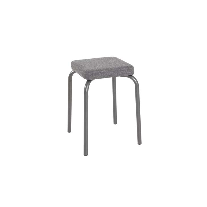 Табуретка с правоъгълна седалка с размери Ш:36/Д:36/В:49 см. Моделът се състои от тапицирана седалка с пълнеж от пяна, поставена на четири сиви метални крака с протектори щадящи пода. Практично обзавеждане за дома, офиса или студио за красота. Независимо от своите малки размери, табуретката е способна да понесе товар до 90 кг, което гарантира нейната безпроблемна дълготрайна употреба.