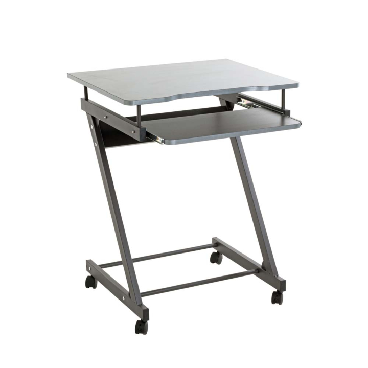 Притежава обширна горна повърхност за поциониране на вашия компютър, долен плот с изтеглящ механизъм, както и долен плот. Плотовете са изработени в декор антрацит от МДФ /16 мм/. Периферно е разположена черна метална рамка и 4 колелца в черен цвят, които осигурят удобно преместване, спрямо вашето удобство, предпочитания и комфорт.