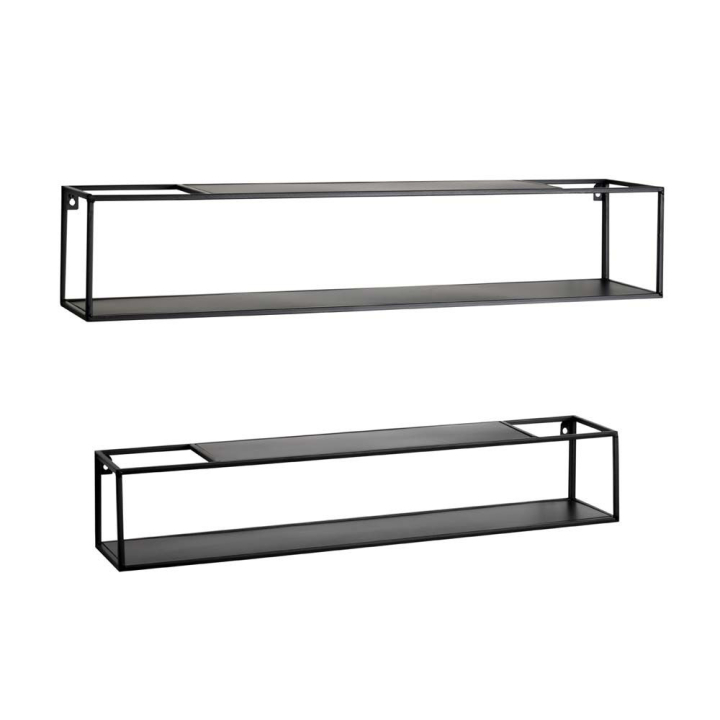 Сет от 2 стенни етажерки в черен цвят с размери: 75/14/14 см; 85/17/17 см