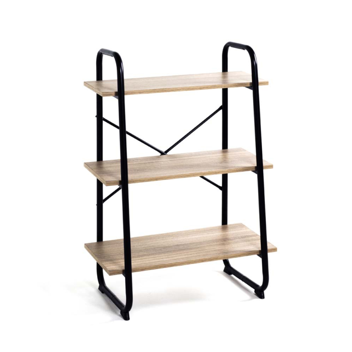 Етажерка с 3 рафта в текстура от дъб и черен метал, размери: 60/36/93 см