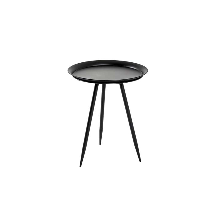 Практична холна маса, изработена от черен метал, предлагаща плот с предвидено място за напитки, декорации, растения или елементи, на които възнамерявате да придадете акцент.