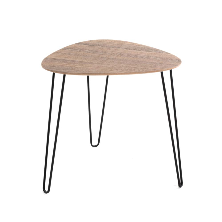 Практична холна масичка, изработена с основа от метални крачета и плот в светла дървесна текстура.