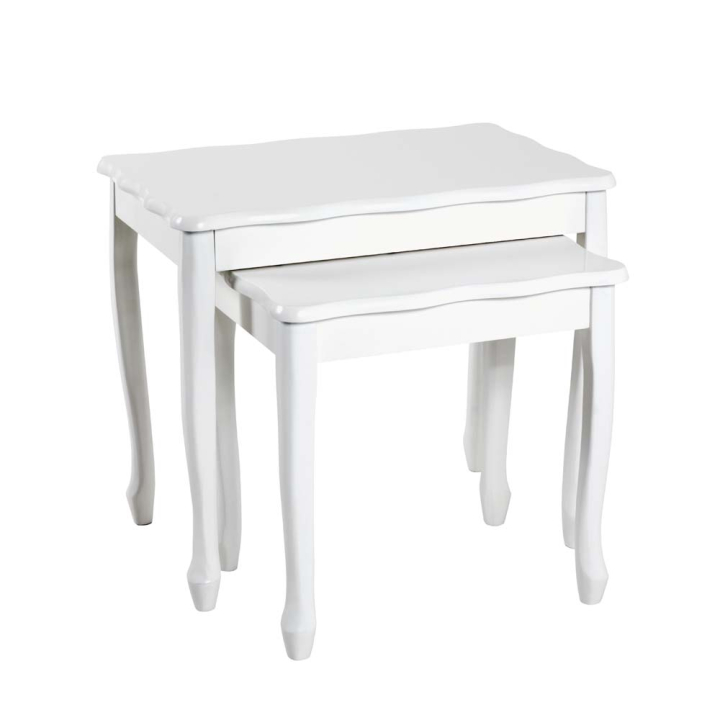 Този стилен сет от 2 бели помощни маси е идеален за класически интериори. С елегантни размери, масите предлагат гъвкавост и удобство. Изчистената бяла повърхност придава свежест и усещане за простор, което ги прави перфектни както за хола, така и за всяка друга стая. Лесни за подреждане и комбиниране, тези маси ще добавят функционалност и стил към всяко пространство.
