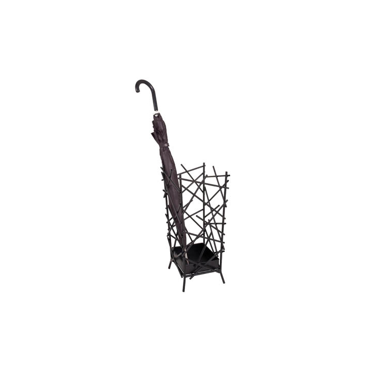 Удобна поставка за чадъри, притежаваща разчупен акцент с изработка от метал в сив цвят.