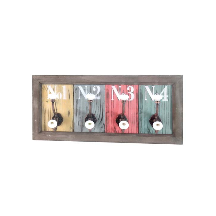 Стенна закачалка от масивна дървесина, притежаваща винтидж визия с 4 куки за стил и функционалност, размери: 48/10/21 см