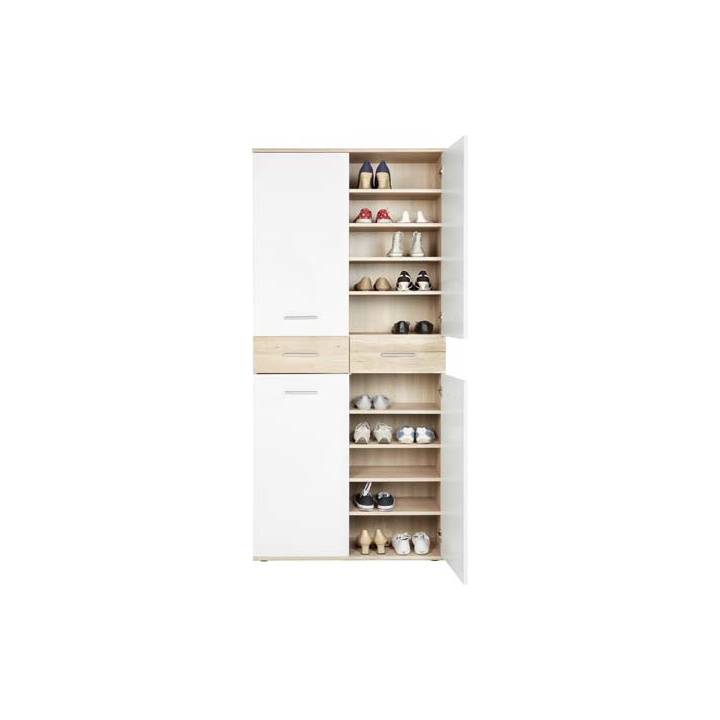 Шкаф за обувки с размер 90/35/195. Функционален и изключително практичен, подходящо решение не само за антрето, но и за голямо гардеробно помещение. Шкафът предлага възможност за съхранение на oбувки, аксесоари и дребни вещи. На рафтовете можете да разполагате допълнителни кутии за по-голяма прегледност и лесен достъп.