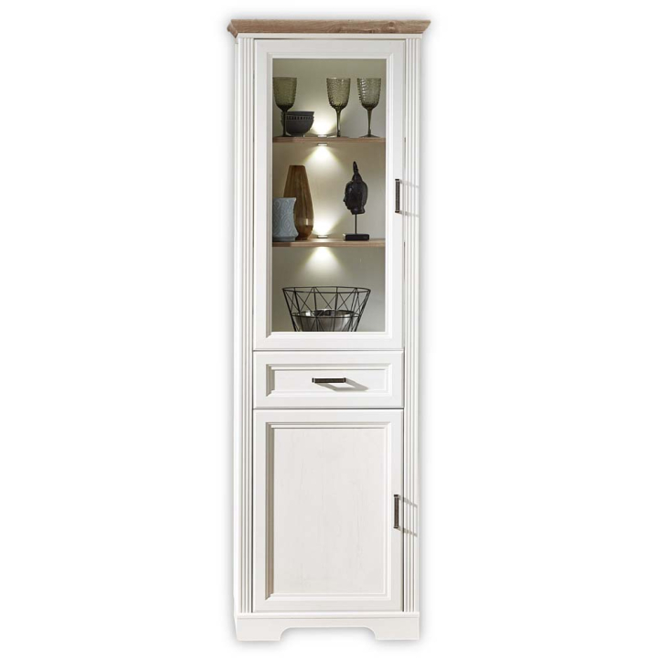 С модулна програма Жасмин можете да обзаведете Вашите дневна, трапезария и антре. На Ваше разположение е богат избор от модули, с включени екстри като механизми за плавно затваряне на врати и чекмеджета, LED осветление, метални дръжки в стил антик. Корпусът и лицето са в декори Графит или Светъл бор, а плотовете и декоративните тавани в декор Дъб Артисан.