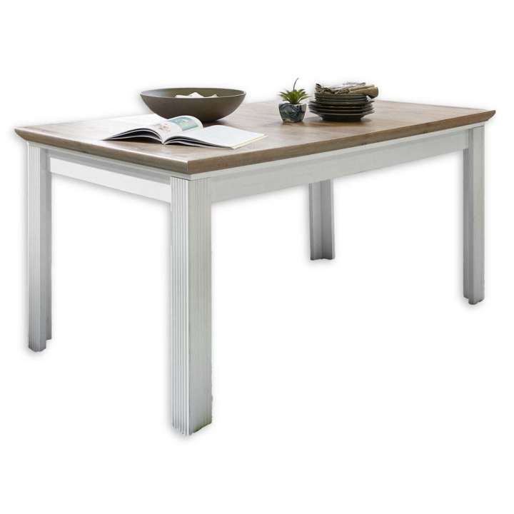 Разтегателна трапезна маса с размери 160-220/90/76 см. Масата е с капацитет да настани удобно от 6 до 8 човека. Плотът е произведен в светъл дъбов декор поставен на 4 L-образни крака с декоративни улеи, стилно декорирани в бял бор. Дизайнът на маста е в античен стил в два декора бял бор и светъл дъбов декор. Със своята визия без усилие създава атмосфера на желан разкош и уют в помещението. Не забравяйте да комбинирате масата с останалите мебели от серия Жасмин.