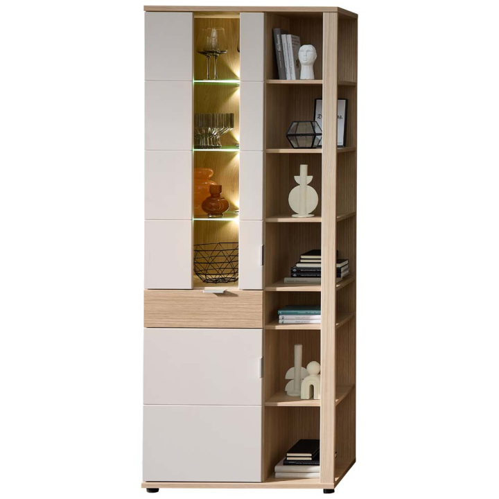 Висока витрина Базел с LED осветление - елегантност и функционалност във всеки детайл, размери: 80/38/202 см
