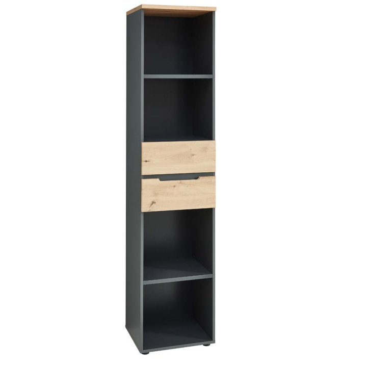 Практична офис етажерка произвена от материали - ПДЧ и МДФ в сив цвят, съчетан с текстура от дъб артисан.
