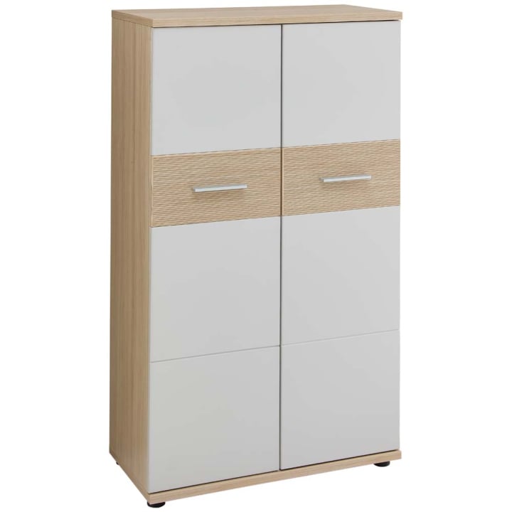 Нисък офис шкаф Базел в цвят дъб рива и кашмир супермат, размери 75/38/129 см