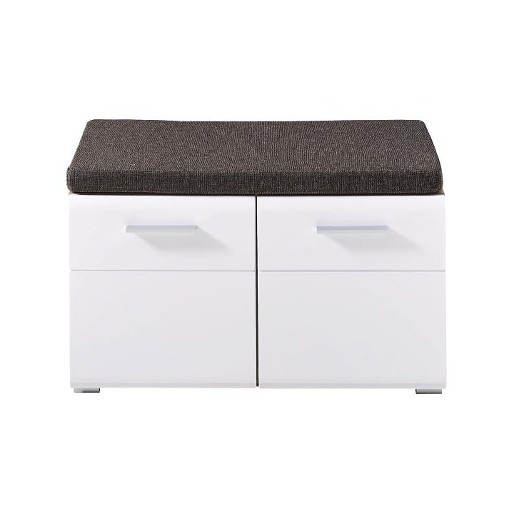 Пейка-шкаф за антре с възглавница с размери Ш:80/Д:37/В:48 см. Състои се от конструкция в дъбов декор и две врати в бял мат, зад които са монтирани два рафта. Моделът е произведен от ПДЧ с красива текстура на състарен дъб. Вратичките са от MDF в бял мат с монтирани сиви дръжки. Върху плота на шкафа е поставена възглавница с пълнеж от пяна, за комфортно седене.