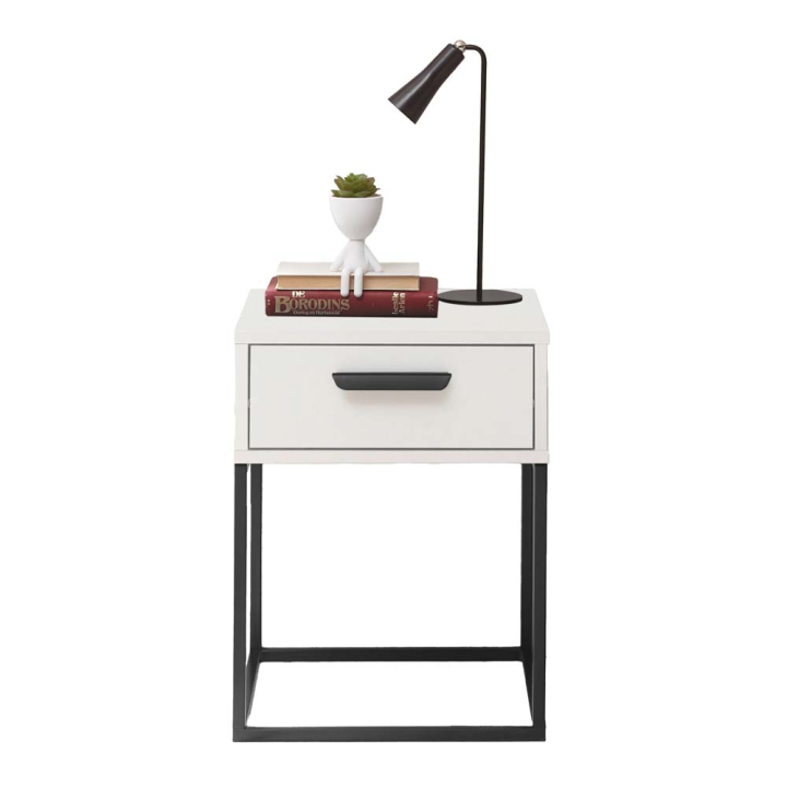 Нощно шкафче с чекмедже с размери Ш:40/Д:38.5/В:52 см. Притежава семпъл, но стилен дизайн, който лесно може да комбинирате с други мебели. Проектирано с правоъгълна конструкция с 1 чекмедже, поставена на метална рамка за основа. Чекмеджето е изключително удобно за съхранение на дреболийки в спалнята, като лесно може да бъде изваждано посредством черна дръжка. Плотът е с компактни размери удобен за поставянето на нощната лампа или чаша с вода. Може да изберете да бъде в бяло, сиво или светъл дървесен декор.