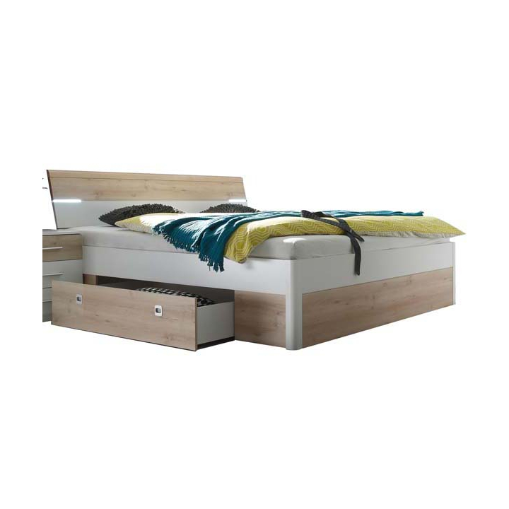 Легло за матрак 180/200см в светъл дървесен и бял цвят с 2 чекмеджета и LED осветление, размери: 185/205/97 см