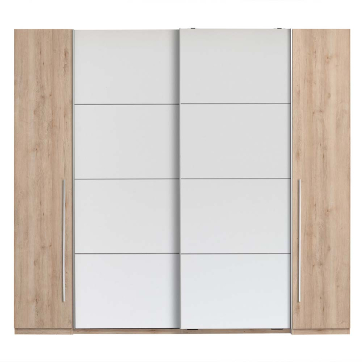 Четирикрилен гардероб с комбинирано отваряне: две плъзгащи се и две стандартно отваряеми врати на панти, размери: 270/61/225 см