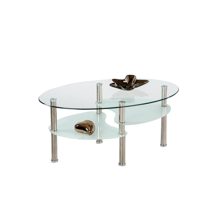 Холна маса със стъклен плот с размери на модела Ш:90/Д:55/В:41 см. Освен практично и красиво обзавеждане за хола до меката мебел, масата разполага с достатъчно голям плот за поставянето на освежителните напитки с капацитет около 4 човека. Под плота са монтирани два стъклени бели рафта, където място ще намерят списанията и каталозите. Със своята визия, моделът ще направи атмосферата в помещението по-модерна.