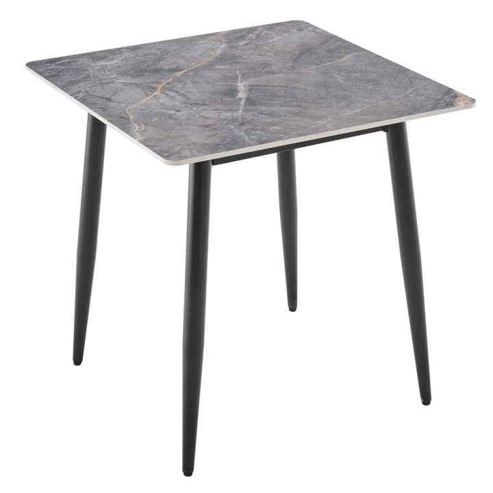 Сива трапезна маса Ейвън с керамичен плот и черни метални крака, размери: 75/75/75 см