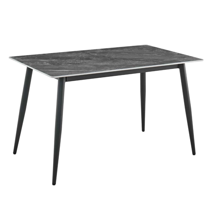 Сива трапезна маса Бенедикт с керамичен плот и черни метални крака, размери: 120/75/75 см