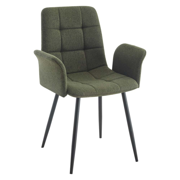 Зелен трапезен стол Джеф с подлакътници и черни метални крака, размери: 59/54,5/87,5 см