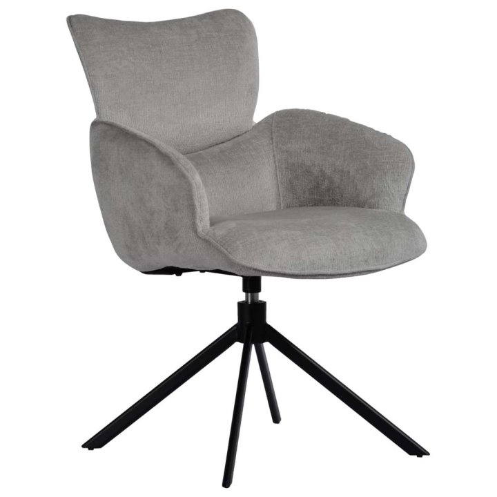 Сив трапезен стол Дейв с подлакътници и въртящ механизъм, размери: 58/64/88,5 см
