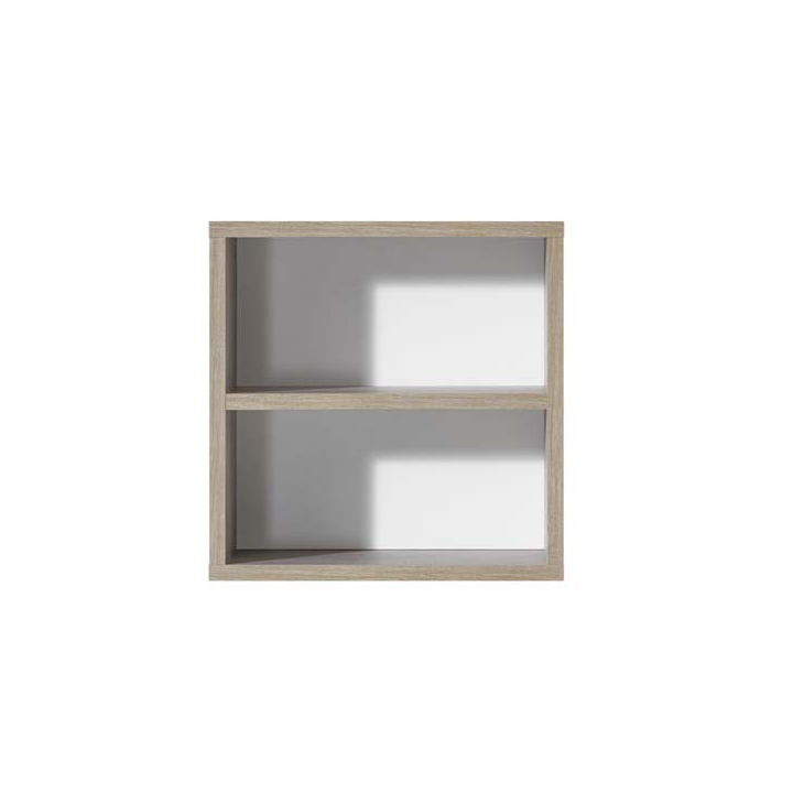 Полица с размери Ш:49/Д:25/В:49 см. Моделът се състои от квадратна конструкция, в която е монтиран един рафт, образуващ две отворени ниши. Произведена е от ПДЧ с дървесна текстура и бяло.