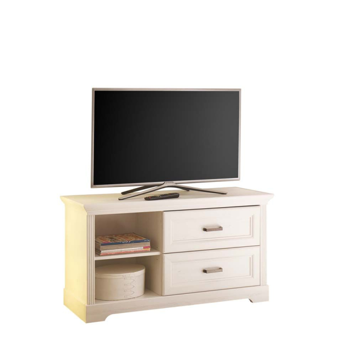 Бял ТВ шкаф Марилу с 2 ниши и 2 чекмеджета, размери: 112/42/61 см