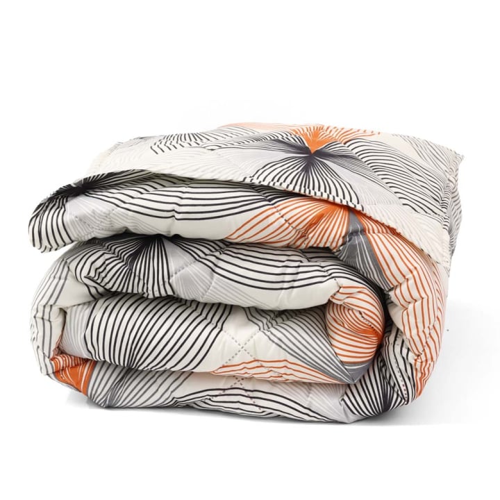 Завивката е с изчистен и геометричен дизайн с цветя, като превръща спалнята в стилно и уютно място за сън и почивка. Лекото капитониране запазва формата и визията ѝ дори след многократно пране.