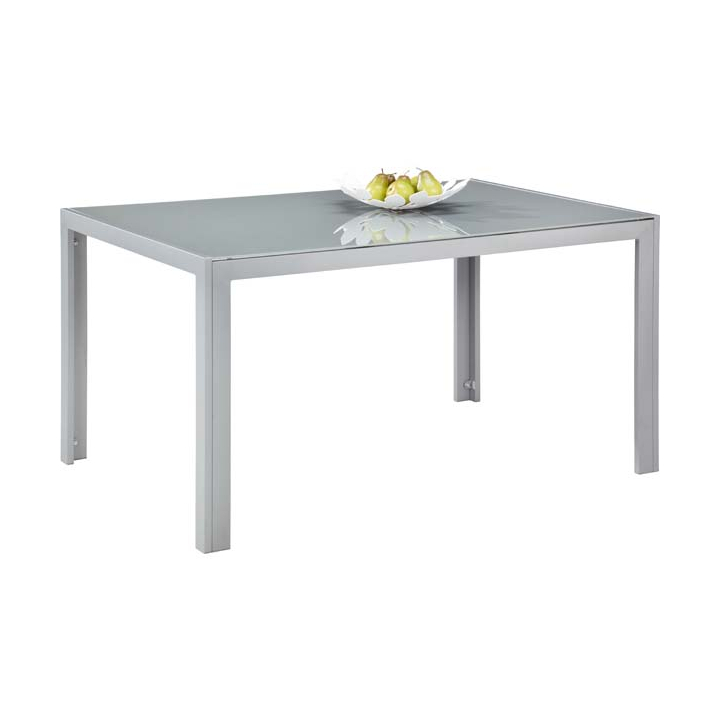 Модерната градинска маса „Houston” е изработена от лек алуминий и стъклен плот с дебелина 5 мм. Изключително практична за вашата тераса или за градината. Материалът е устойчив на атмосферни влияния и може да издържи до 50 кг натоварване. Алуминият е праховобоядисан, стъклото е закалено. Сребристият цвят внася свежест и допълнителен шик.